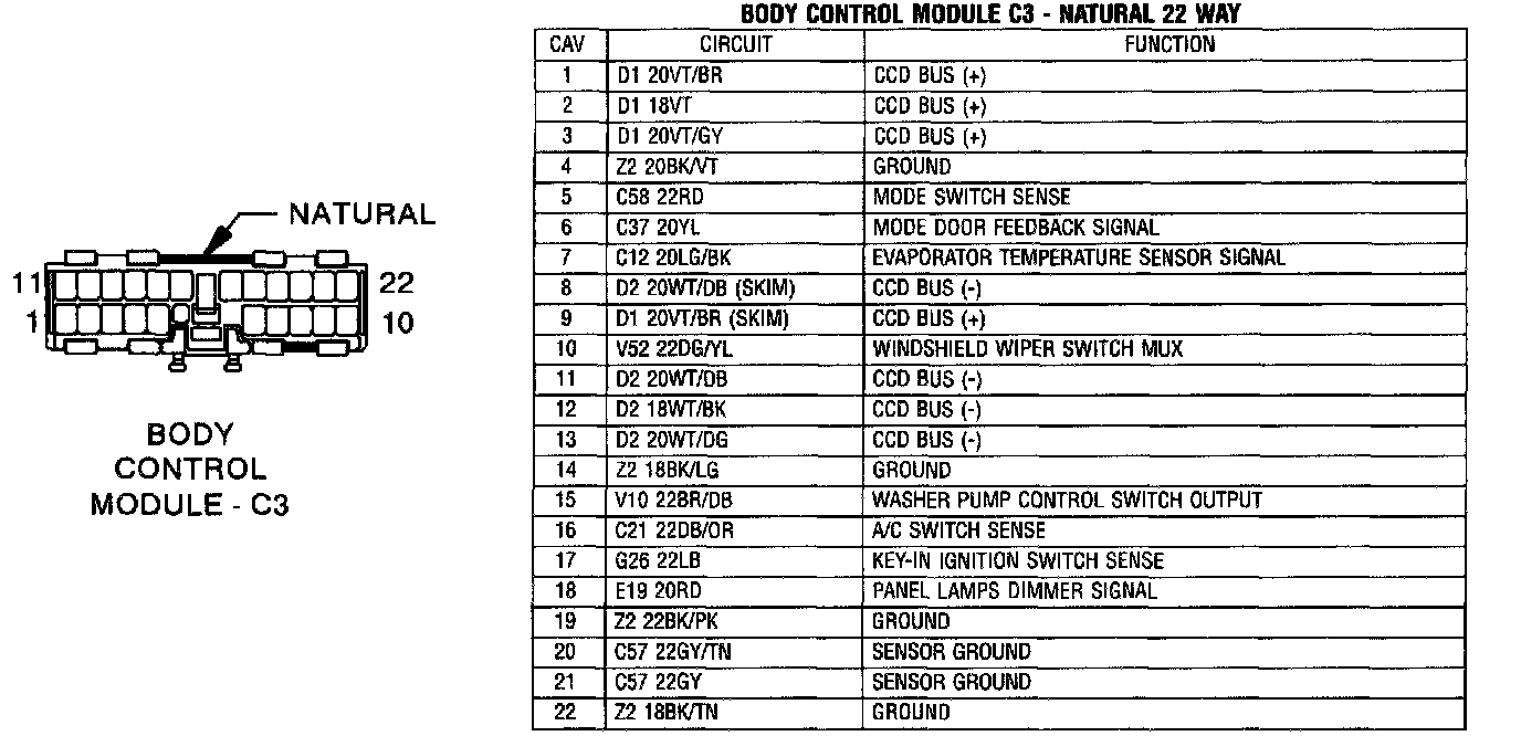 Body Control Module C3 Natural 22 Way: