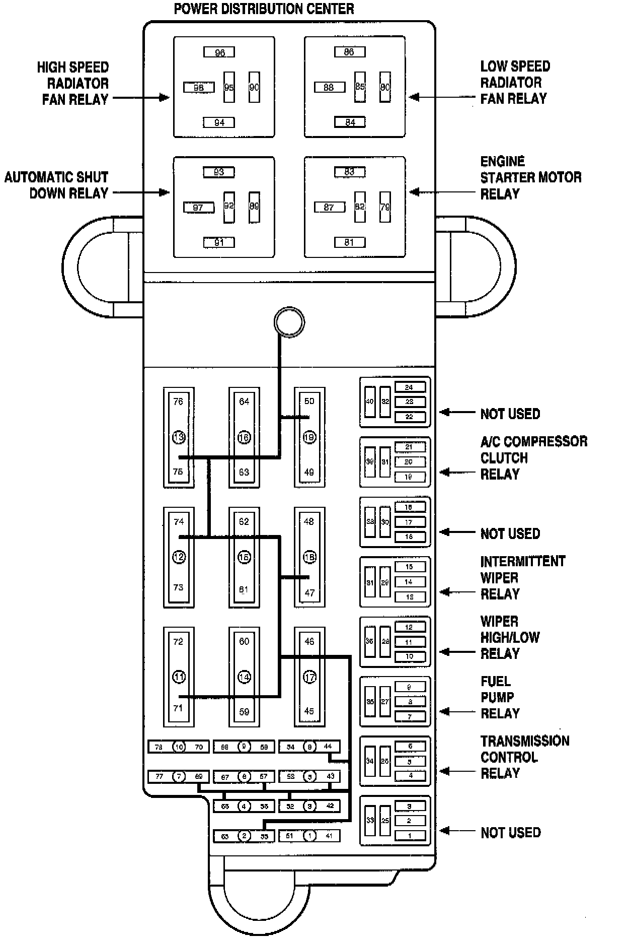 8w-10-2 Power Distribution Center (PDC) in the engine compartment: