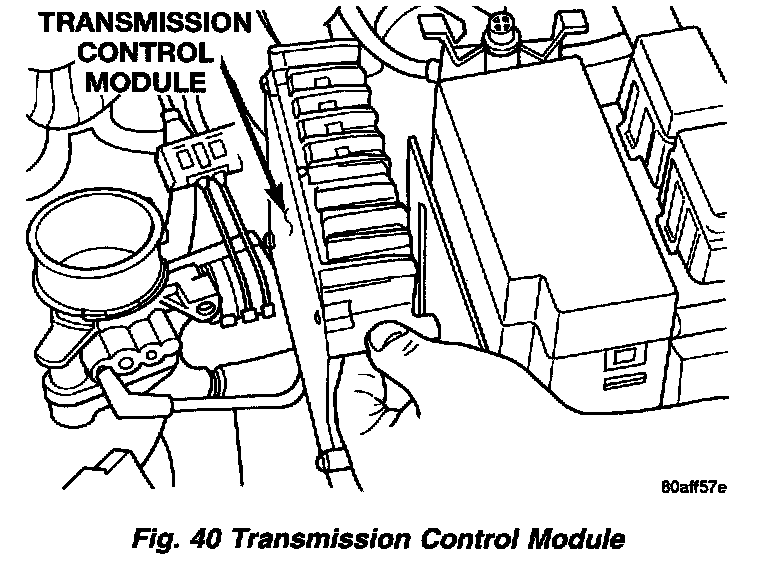 The transmission control module is next to the battery on the left side of vehicle, in the engine compartment. It is held in place by three mounting screws.