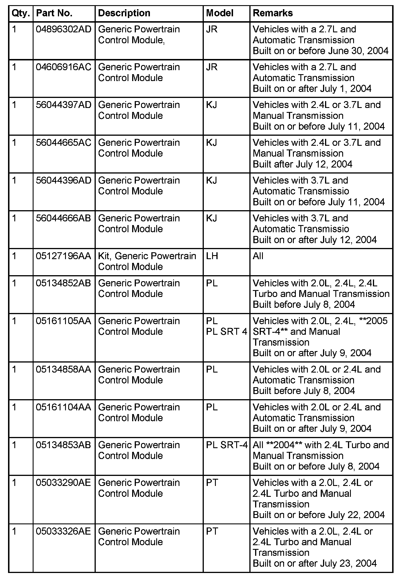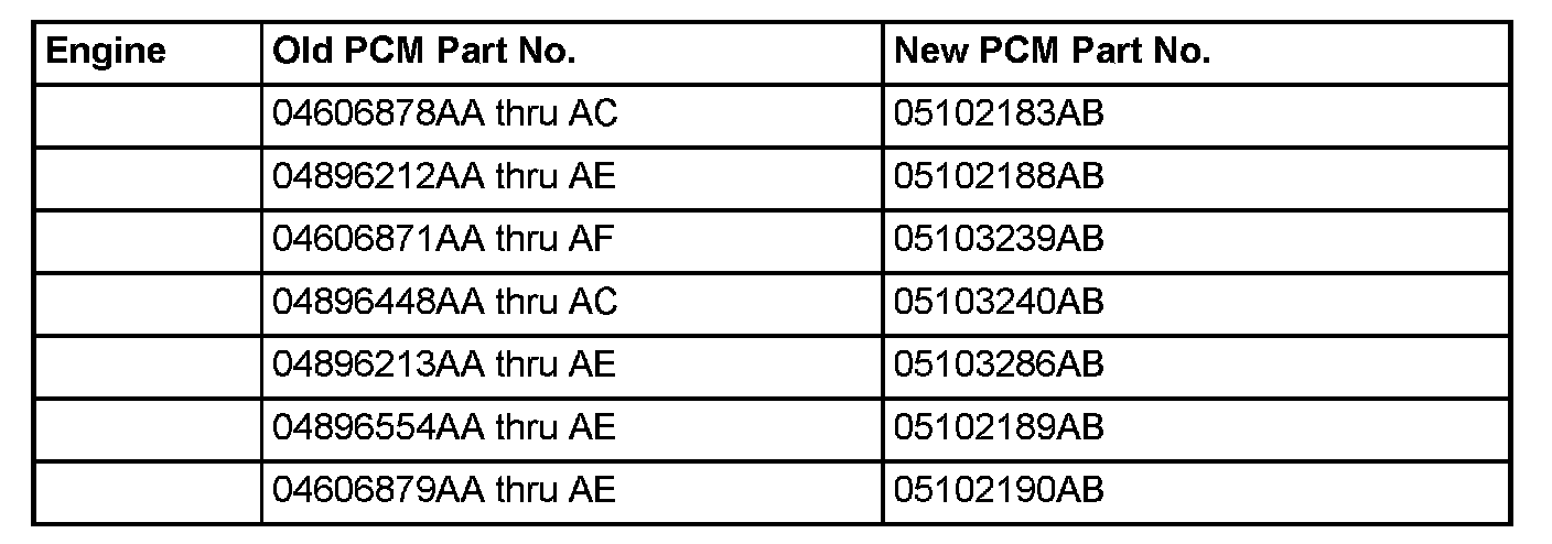 Mopar(R) is currently phasing out pre-programmed PCMs for the vehicles listed. New modules will no longer be pre-programmed when received from Mopar(R). Replacement of future PCMs will require programming utilizing the DRBIII(R) and TechCONNECT. The PCM will not operate the engine until it is programmed. A Diagnostic Trouble Code (DTC) will be set - "not programmed".