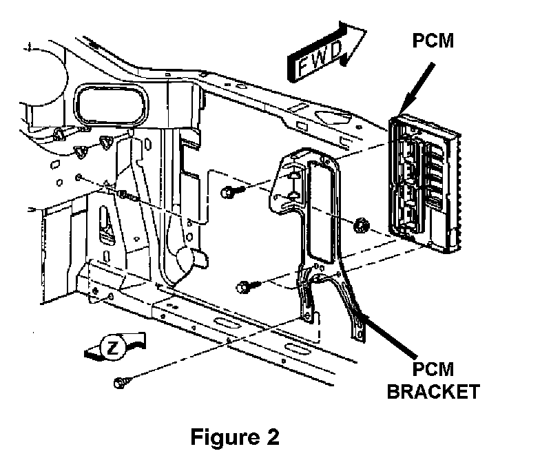 6. Install the new PCM (Figure 2). Tighten the mounting bolts to 105 in-lbs (11.8 Nm).
