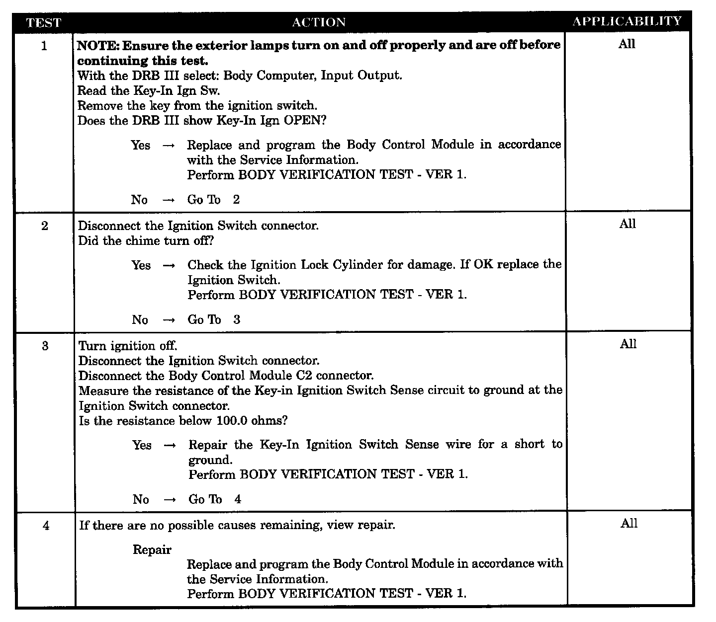 CHIME SOUNDS WITH DRIVER DOOR OPEN KEY REMOVED