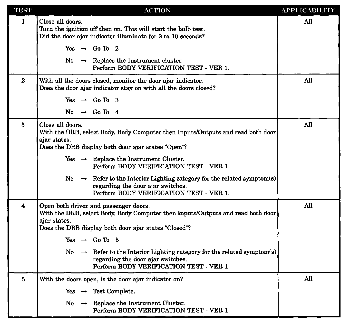DOOR AJAR INDICATOR NOT OPERATING PROPERLY