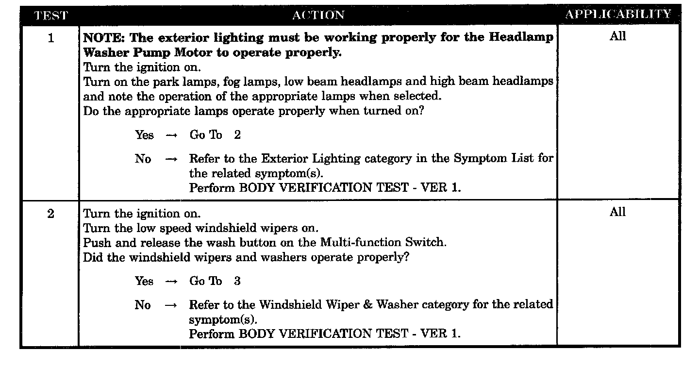 HEADLAMP WASHERS NOT OPERATING PROPERLY