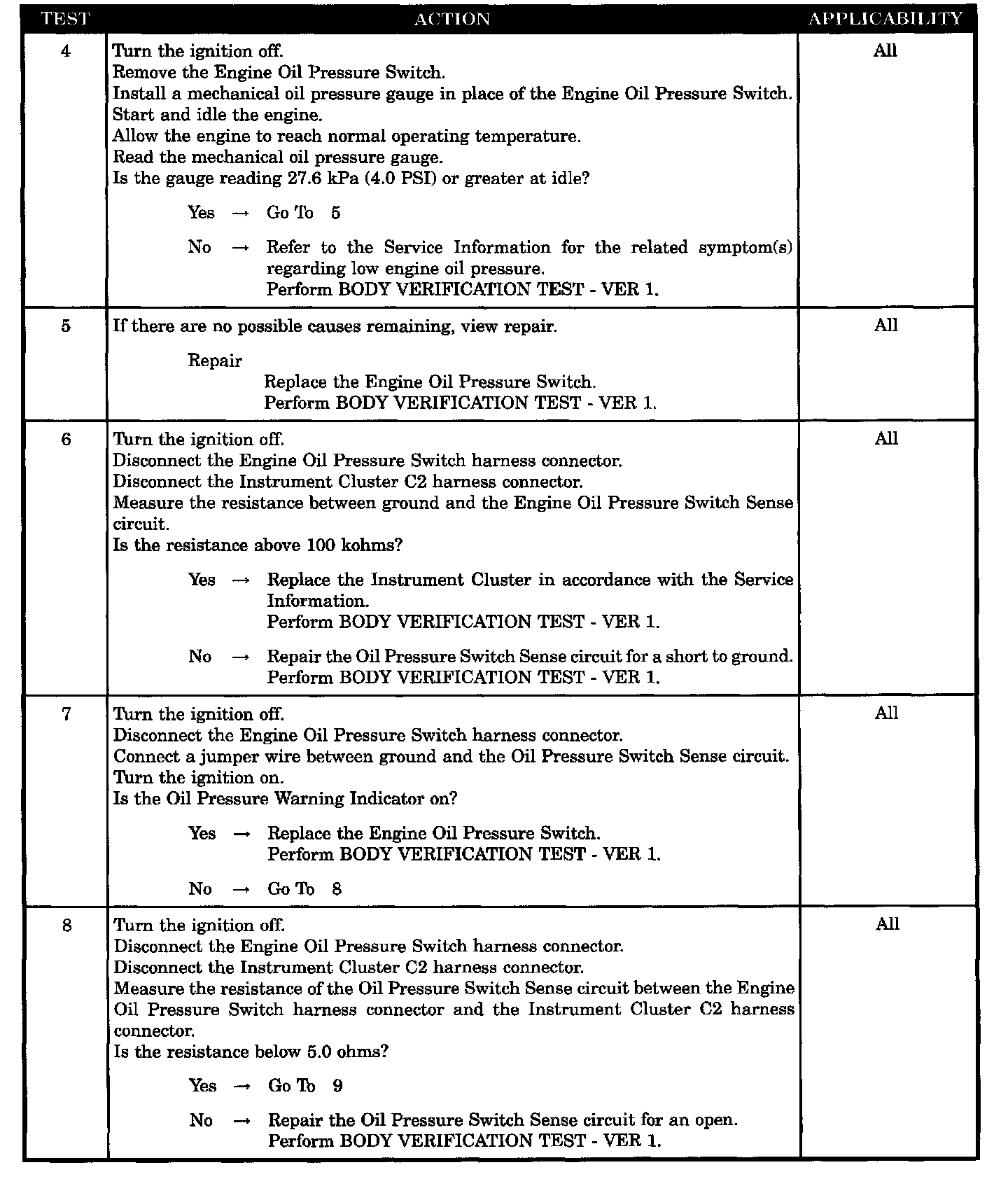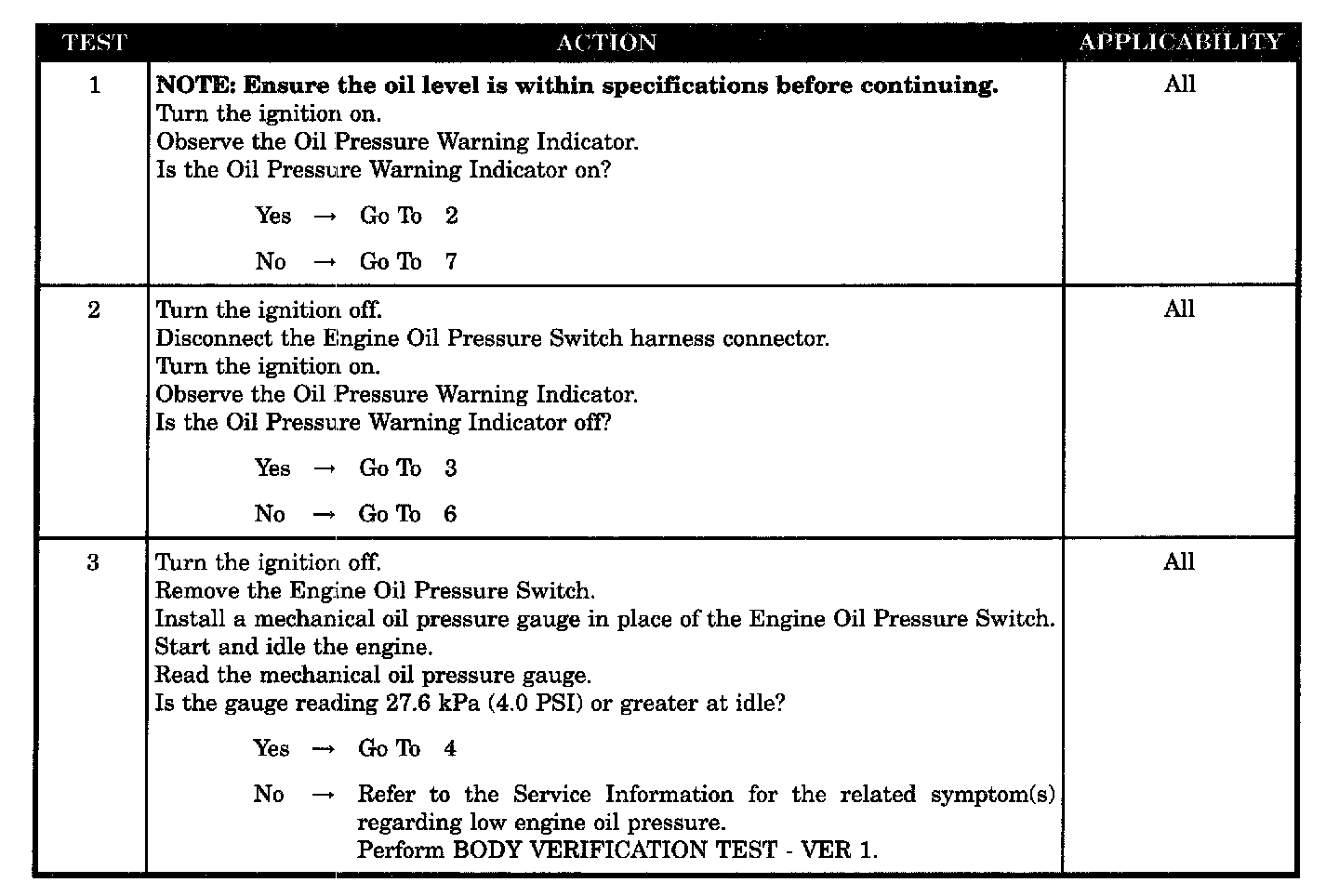 OIL PRESSURE WARNING INDICATOR NOT OPERATING PROPERLY