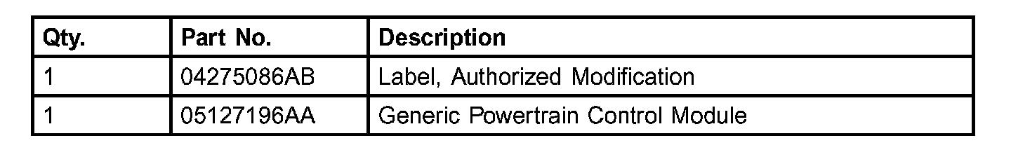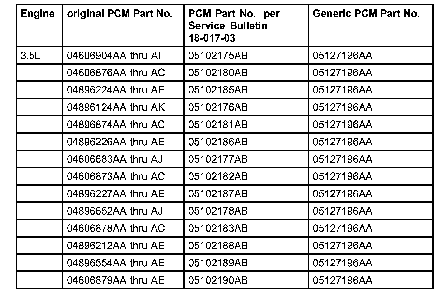 For 2002 model year LH vehicles equipped with the original PCM (as determined by the table) the PCM must be replaced with a generic PCM, part number 05127196AA.