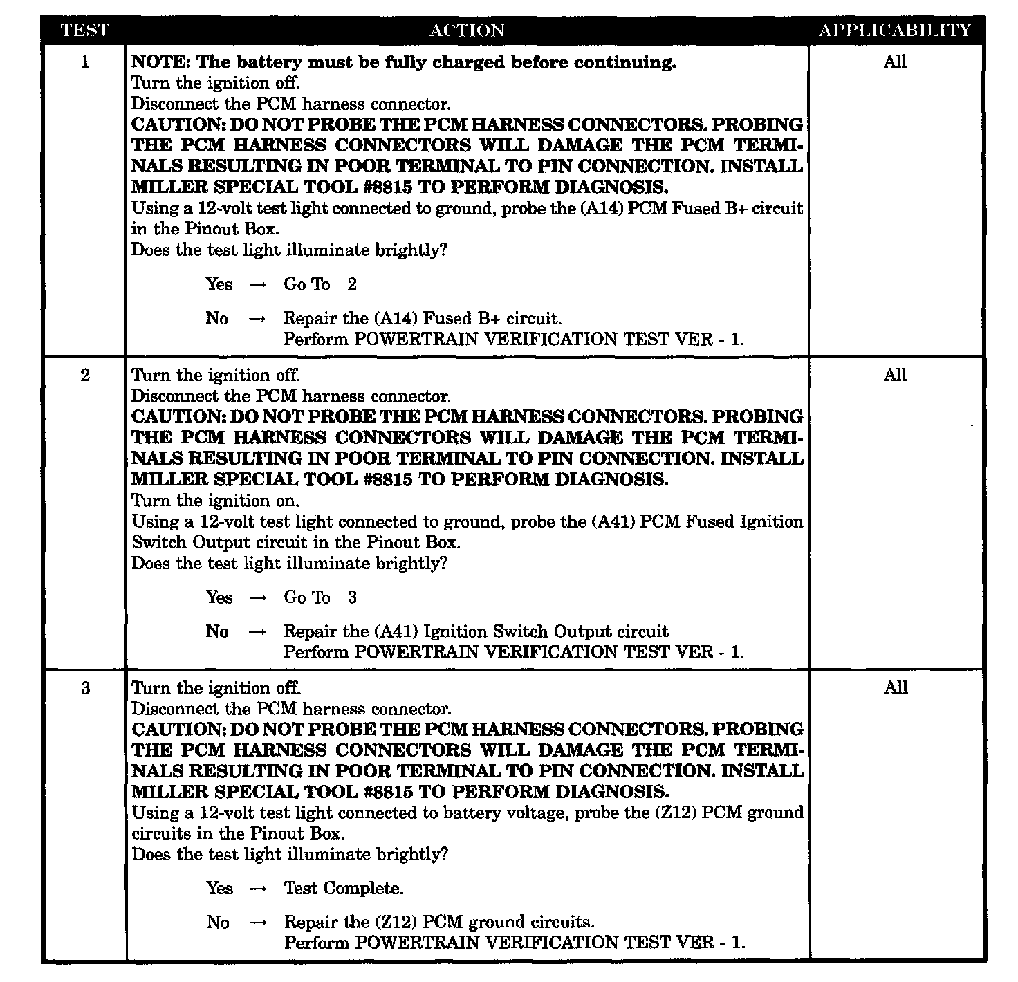 CHECKING PCM POWER AND GROUND CIRCUITS