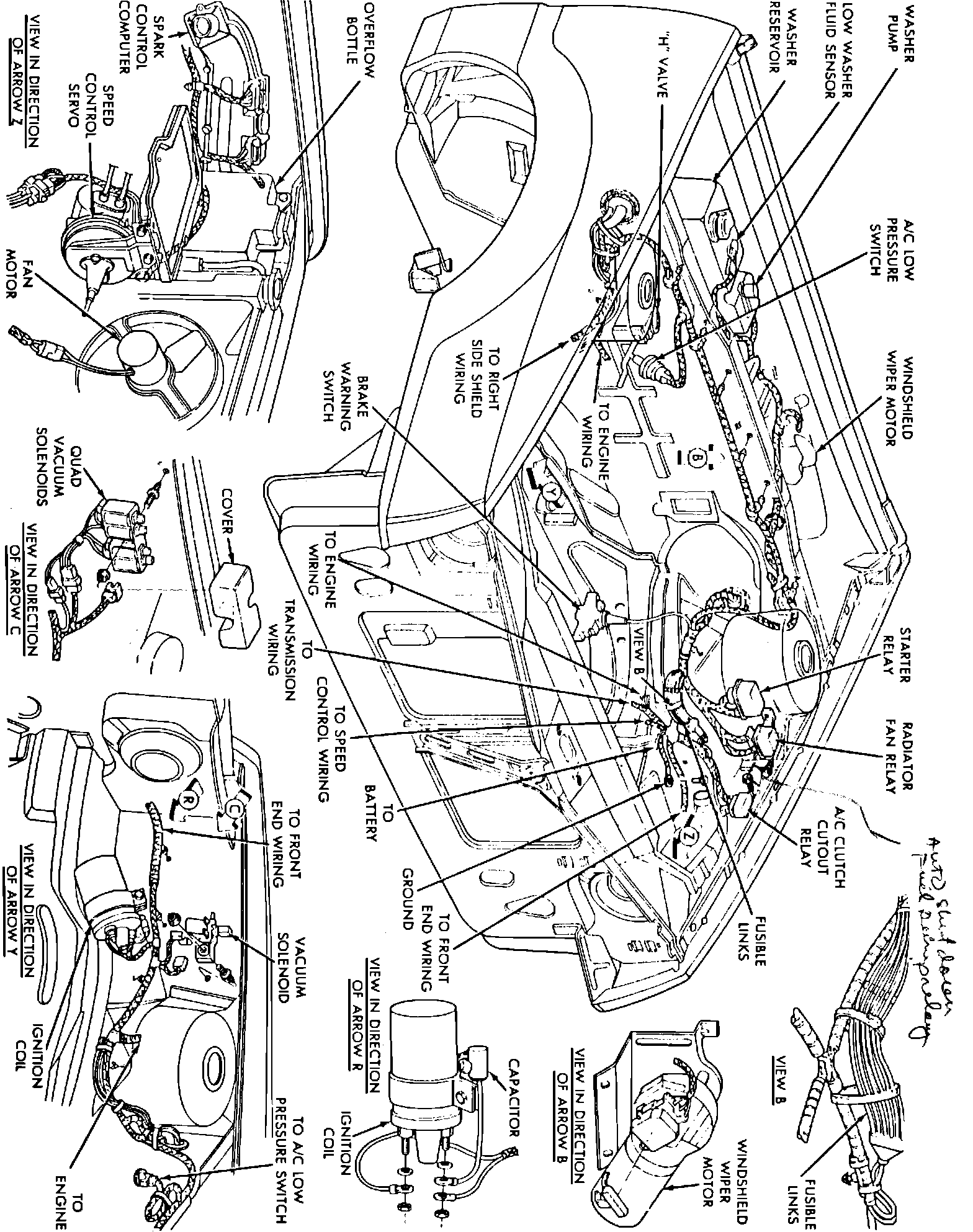 Front end & engine compartment components.: On LH Fender, Near Strut TowerApplicable to: 1987 Shadow & Sundance