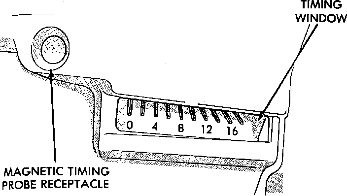 6. NOTE: There is an additional socket in the bellhousing of the transaxle, it is a socket for a magnetic timing probe. Do not set the timing through this socket with a standard timing light. This socket is positioned 10 degrees ATDC and will yield inaccurate timing specifications if used with a standard timing light.
