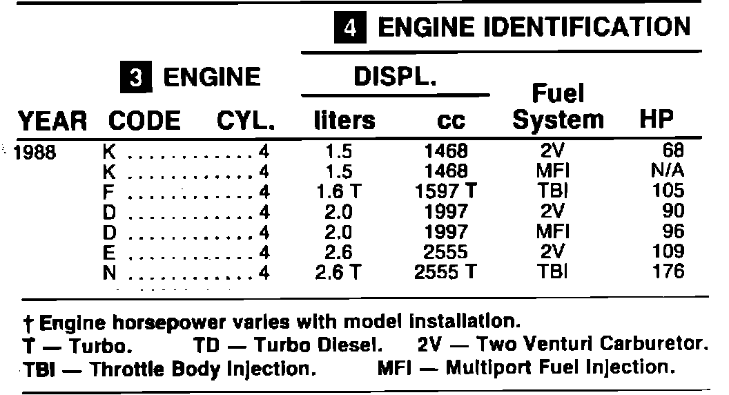 2 ENGINE CODE LOCATION: 8th character of V.I.N.
