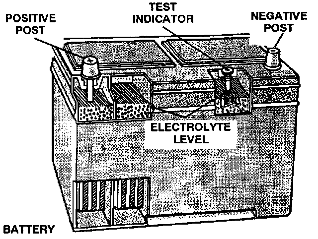 Check the battery for loose posts, leakage, and excessively low electrolyte.