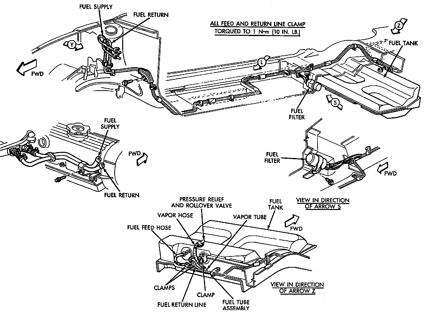 The hoses used on fuel injected models are of a special type and only hoses marked EFI/EFM may be used as replacements. The clamps used are of a rolled edge construction to prevent cutting hoses, and all replacements must be of this type.
