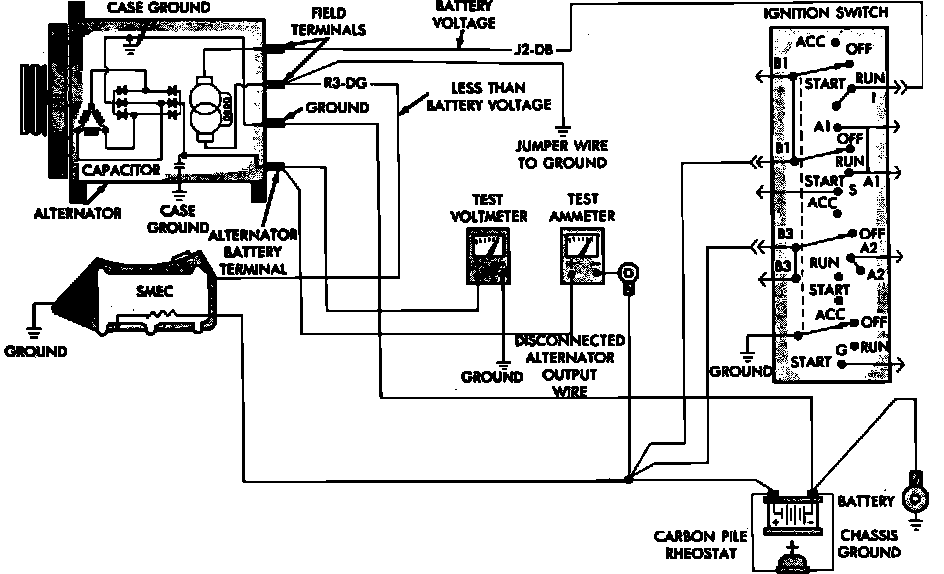 7. If ammeter reading is not within limits, replace alternator. Refer to Starting and Charging/Charging System/Alternator/Specifications/Electrical.