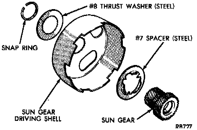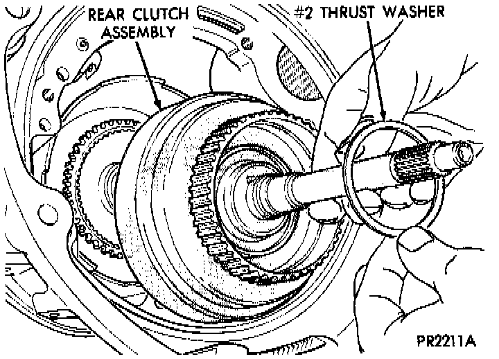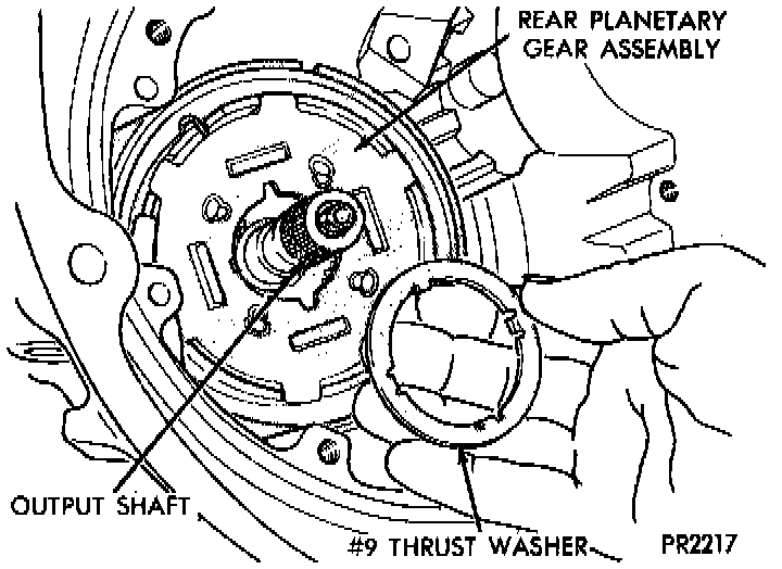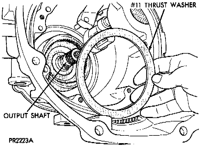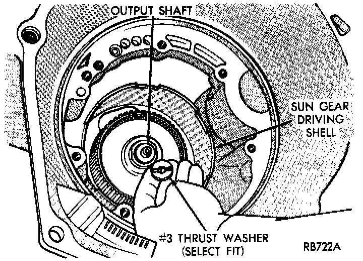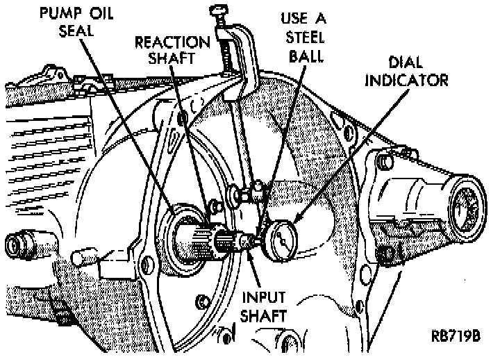 3. Measuring input shaft end play before disassembly will usually indicate when a thrust washer change is required. The thrust washer is located between input and output shafts.