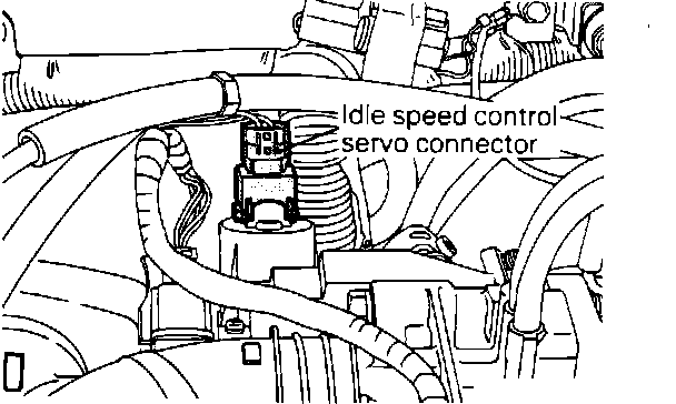 4. Turn the ignition switch OFF and disconnect the electrical connectors for the idle speed control servo. This will lock the idle speed control plunger at the initial position.