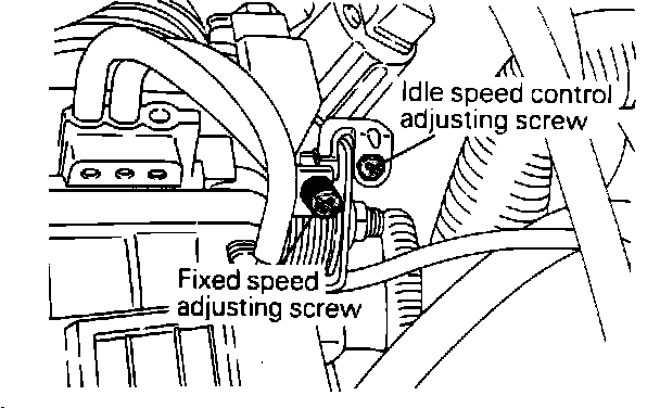 9. If idle speed is not as specified, adjust the idle speed control adjusting screw with a hexagon wrench.