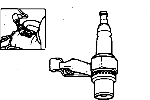 The spark tester is inserted into the plug wire, and clamped to a good clean ground. When the key is turned to the start position, a crisp sharp sounding spark should jump across the electrode type gap.
