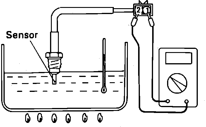 1. Place the EGR temperature Sensor in water and heat to 122°F (50°C).