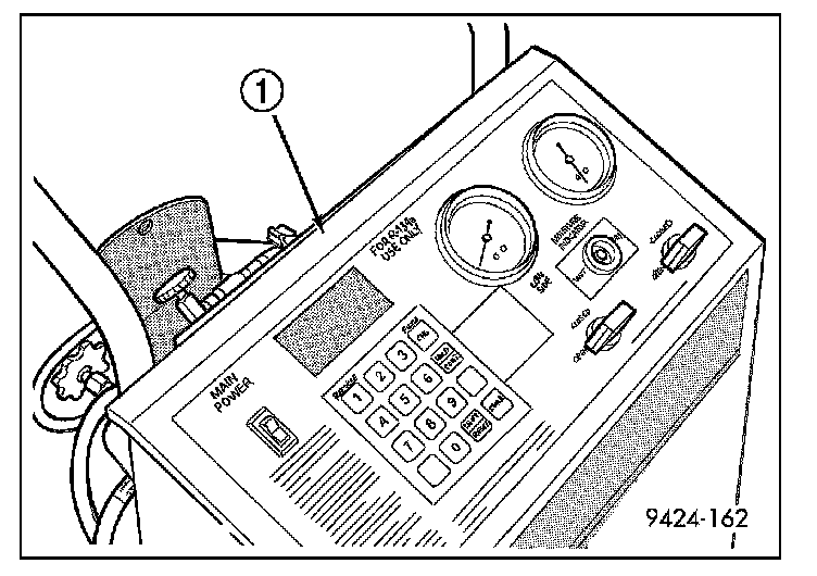 An R-134a refrigerant recovery/recycling/charging station (1) that meets SAE standard J2210 must be used to recover the refrigerant from the R-134a refrigerant system. Refer to the operating instructions supplied by the equipment manufacturer for the proper care and use of this equipment.