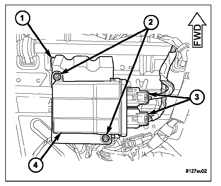 WARNING: NEVER REPLACE BOTH THE OCCUPANT RESTRAINT CONTROLLER (ORC) AND THE OCCUPANT CLASSIFICATION MODULE (OCM) AT THE SAME TIME. IF BOTH REQUIRE REPLACEMENT, REPLACE ONE, THEN PERFORM THE AIRBAG SYSTEM TEST BEFORE REPLACING THE OTHER. BOTH THE ORC AND THE OCM STORE OCCUPANT CLASSIFICATION SYSTEM (OCS) CALIBRATION DATA, WHICH THEY TRANSFER TO ONE ANOTHER WHEN ONE OF THEM IS REPLACED. IF BOTH ARE REPLACED AT THE SAME TIME, AN IRREVERSIBLE FAULT WILL BE SET IN BOTH MODULES AND THE OCS MAY MALFUNCTION AND RESULT IN PERSONAL INJURY OR DEATH.