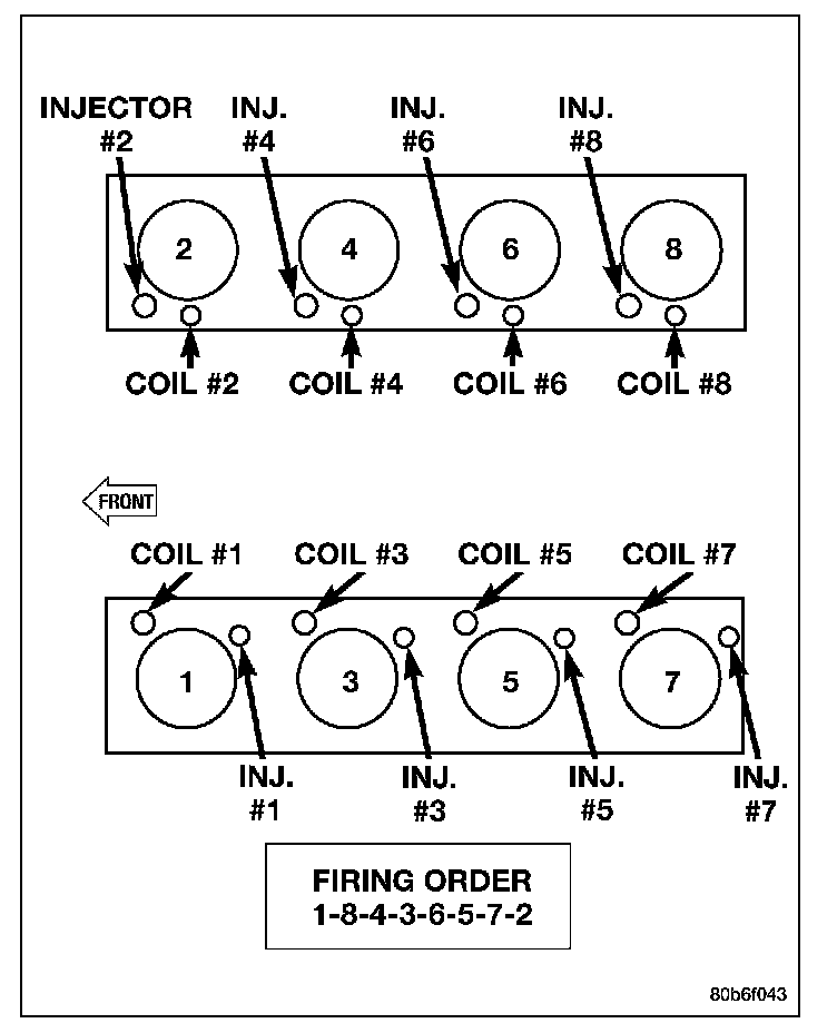 The 6.1L engine (370 CID) eight-cylinder engine is a 90οΏ½ V-Type lightweight, deep skirt cast iron block, aluminum heads, single cam, overhead valve engine with hydraulic roller tappets. The heads incorporate splayed valves with a hemispherical style combustion chamber and dual spark plugs. The cylinders are numbered from front to rear; 1, 3, 5, 7 on the left bank and 2, 4, 6, 8 on the right bank. The firing order is 1-8-4-3-6-5-7-2.