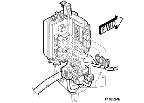 1. Position Integrated Power Module (IPM) to vehicle. Engage the three retaining clips.