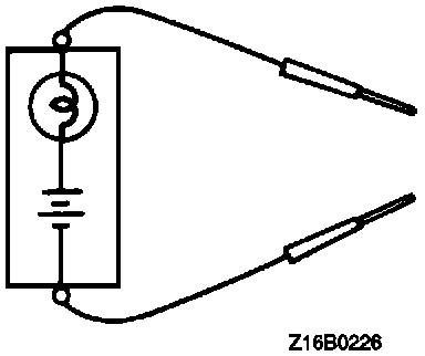 A test light consists of a 12 V bulb and lead wires. It is used to check voltages or short circuits.