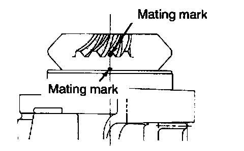 1. After installing the driven bevel gear to the transfer case adapter, match the mating marks.