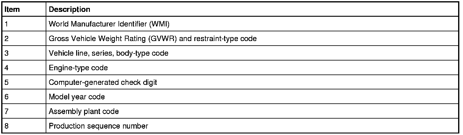 The eighth VIN (Vehicle Identification Number) position identifies the engine type, displacement and number of cylinders.