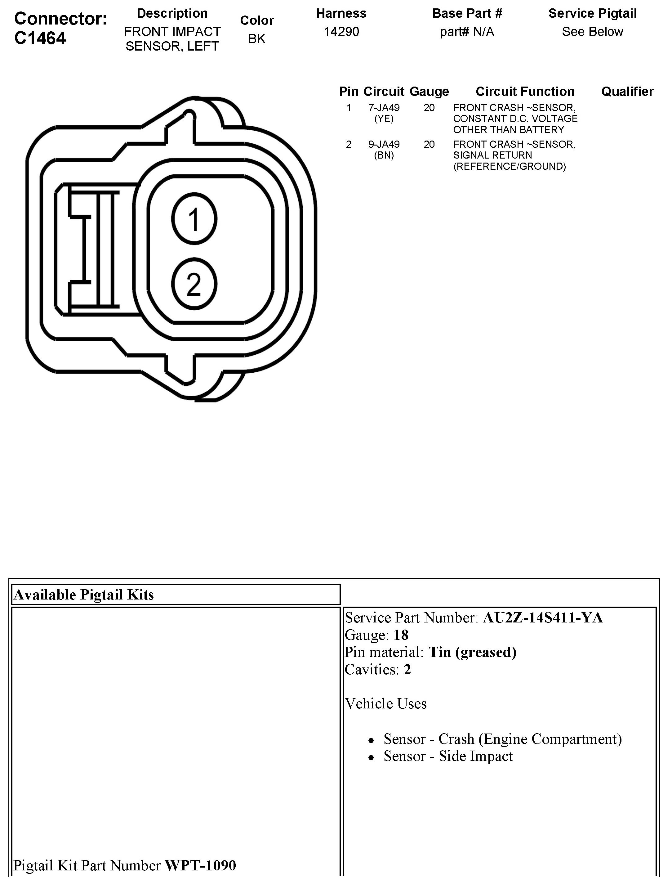 C1464 Front Impact Sensor, Left
