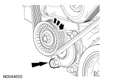 4. Release the drive belt tensioner and remove the drive belt from the A/C compressor pulley.