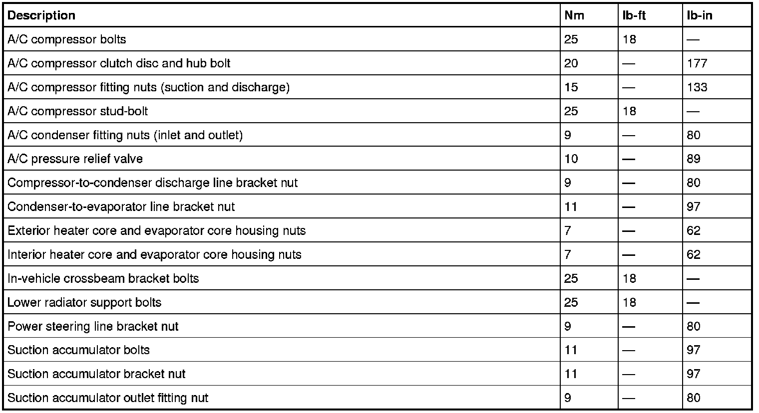 Torque Specifications