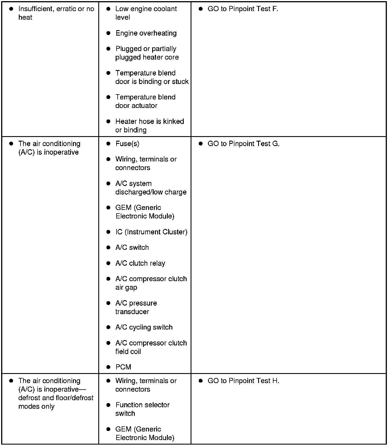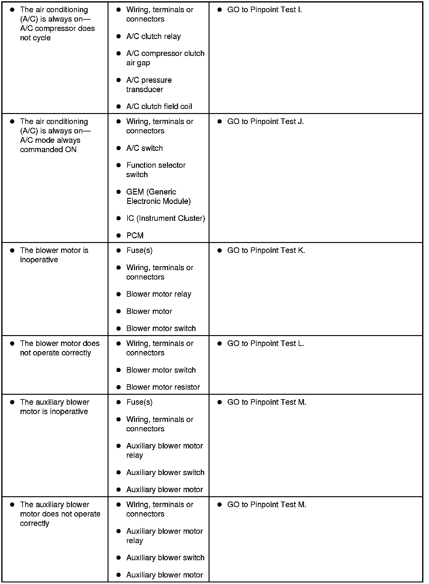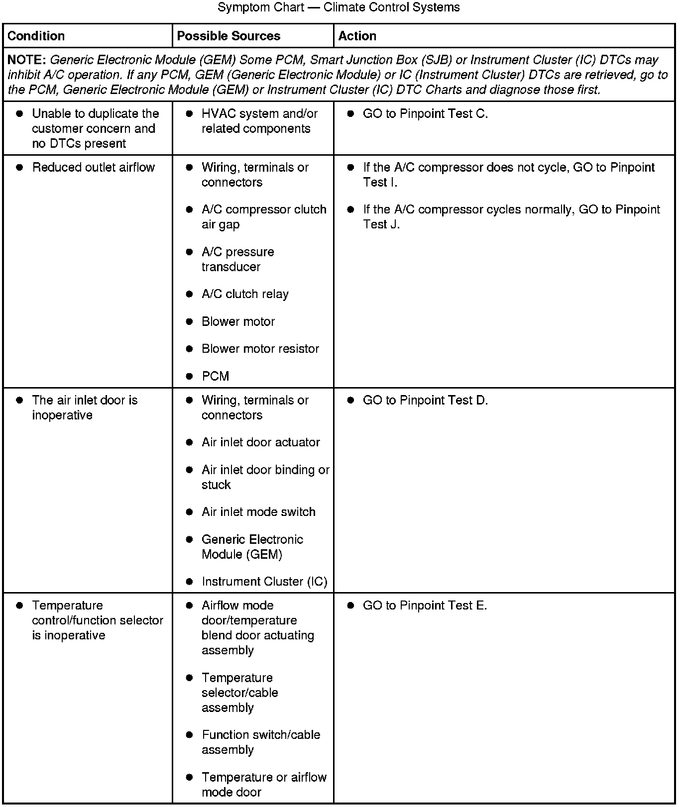 Symptom Chart - Climate Control Systems