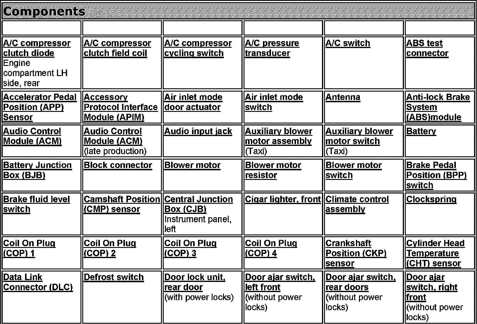 A-Z Components List