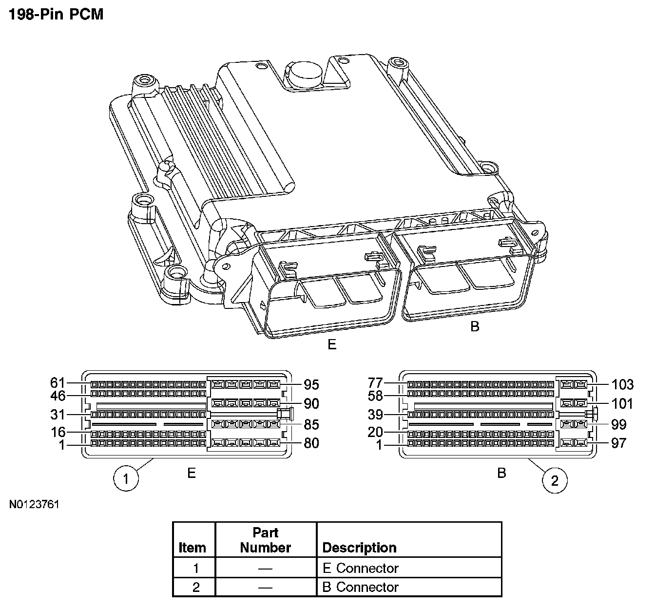 The center of the engine control (EC) system is a microprocessor called the PCM. The PCM receives input from sensors and other electronic components (switches, relays). Based on the information received and programmed into its memory, the PCM generates output signals to control various relays, solenoids and actuators. There are several different types of PCMs in use for this model year. Refer to the Vehicle PCM Application Table below for PCM types and their applications.