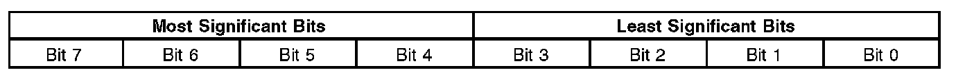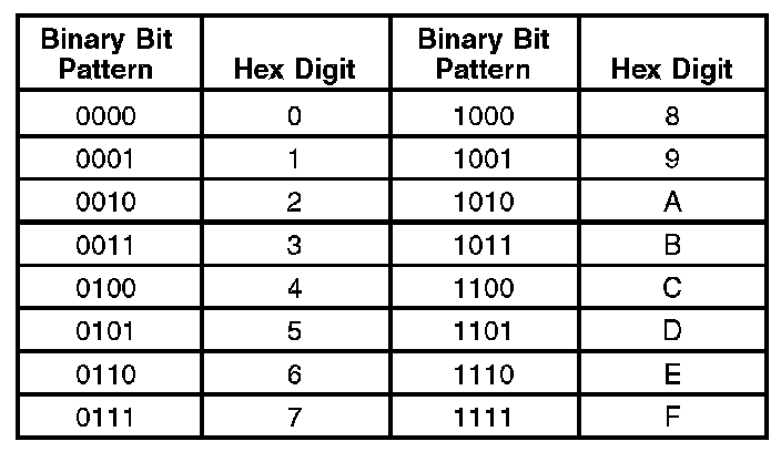 The table below shows how to decode the bits into hex digits.