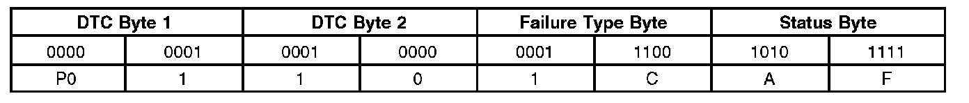 A list of failure type bytes is defined by SAE J2012 but is not described here because the PCM does not use the failure type byte.