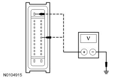 - For vehicles without stability control, measure the voltage between the ABS module C135-1, circuit 30-CF6 (RD), harness side and ground; and between the ABS module C135-20, circuit 15-CF6 (GN/YE), harness side and ground.
