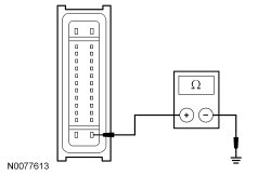 - For vehicles without stability control, measure the resistance between the ABS module C135-26, circuit 91-CF13 (BK/BU), harness side and ground.