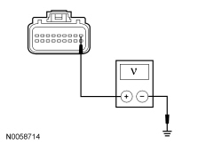 - Measure the voltage between the OCSM (Occupant Classification System Module) C3159-1, circuit 14-JA60 (VT), harness side and ground.