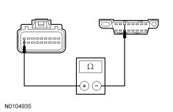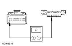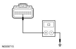 - Measure the resistance between the OCSM (Occupant Classification System Module) C3159-14, circuit 91-JA60 (BK/OG), harness side and ground.