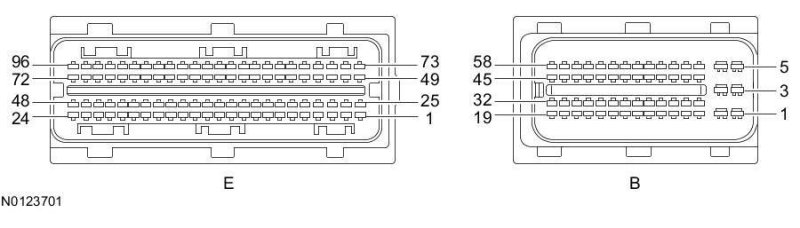 Powertrain Control Module (PCM) Connector - For PCM connector views or reference values, refer to Reference Values.