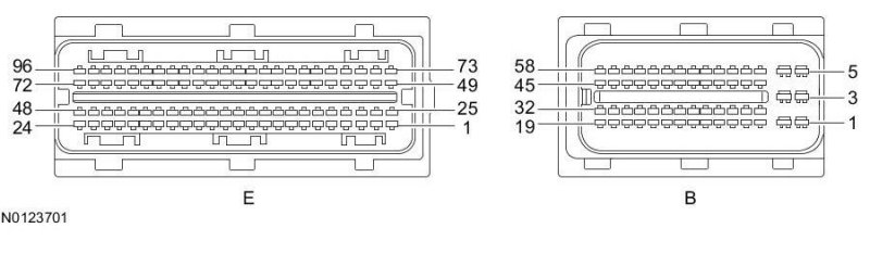 Powertrain Control Module (PCM) Connector - For PCM connector views or reference values, refer to Reference values.