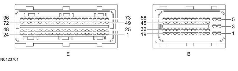 Powertrain Control Module (PCM) Connector - For PCM connector views or reference values, refer to Reference values.