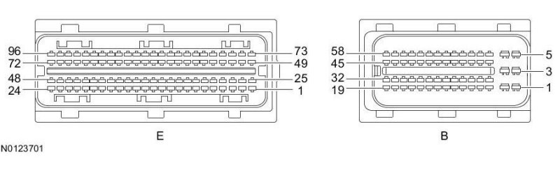 Powertrain Control Module (PCM) Connector - For PCM connector views or reference values, refer to Reference Values.