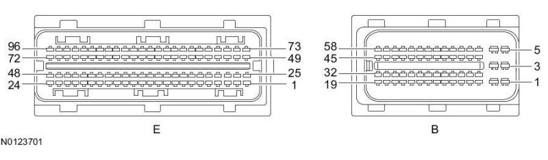 Powertrain Control Module (PCM) Connector - For PCM connector views or reference values, refer to Reference Values.