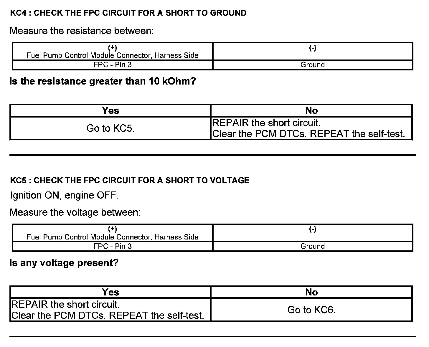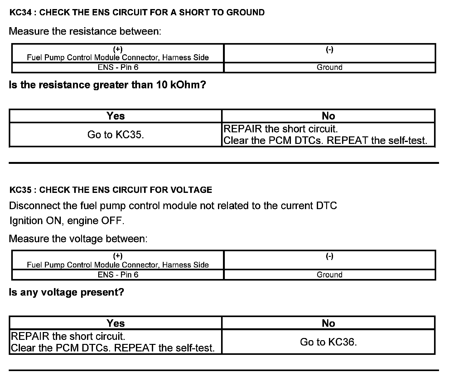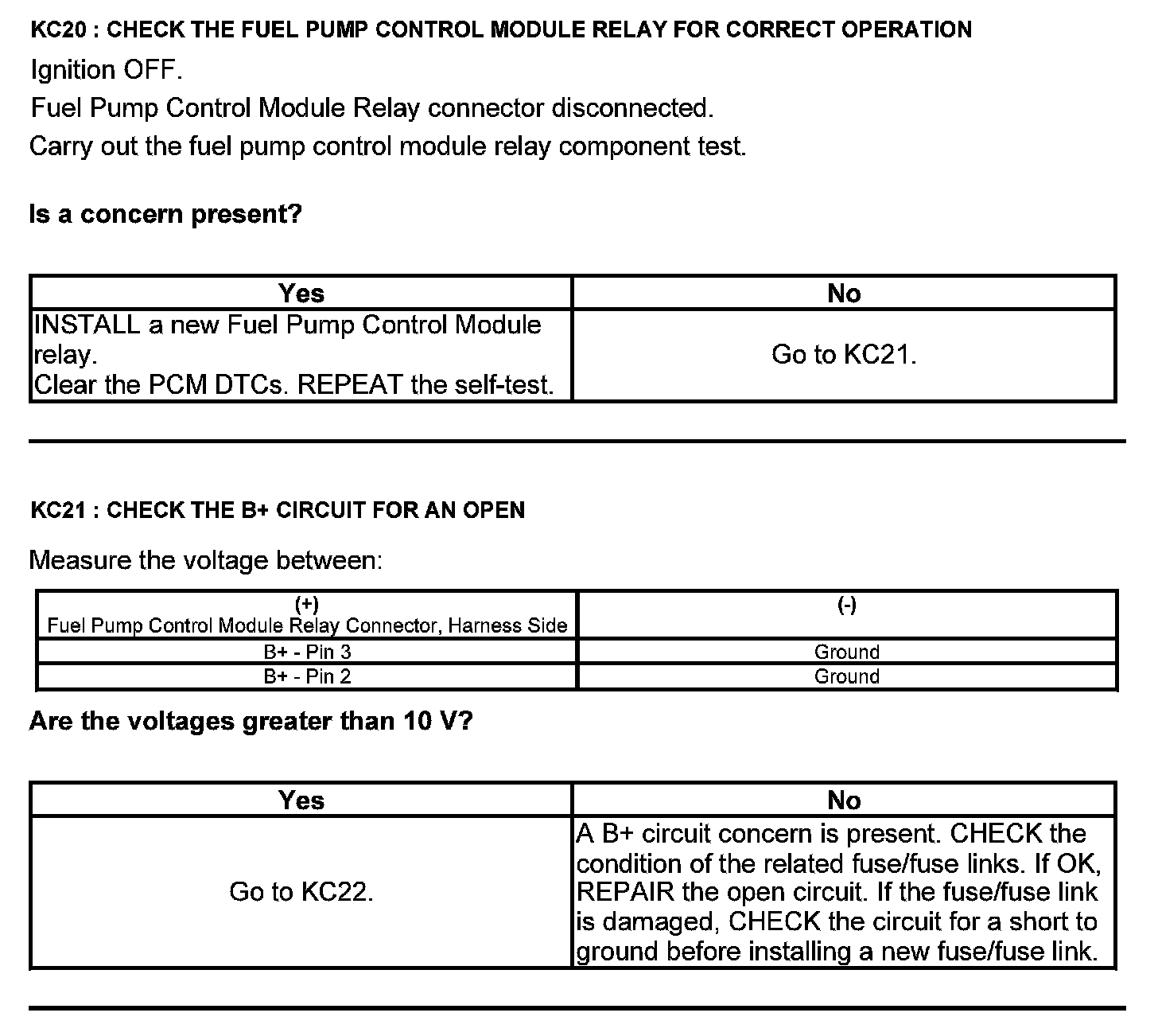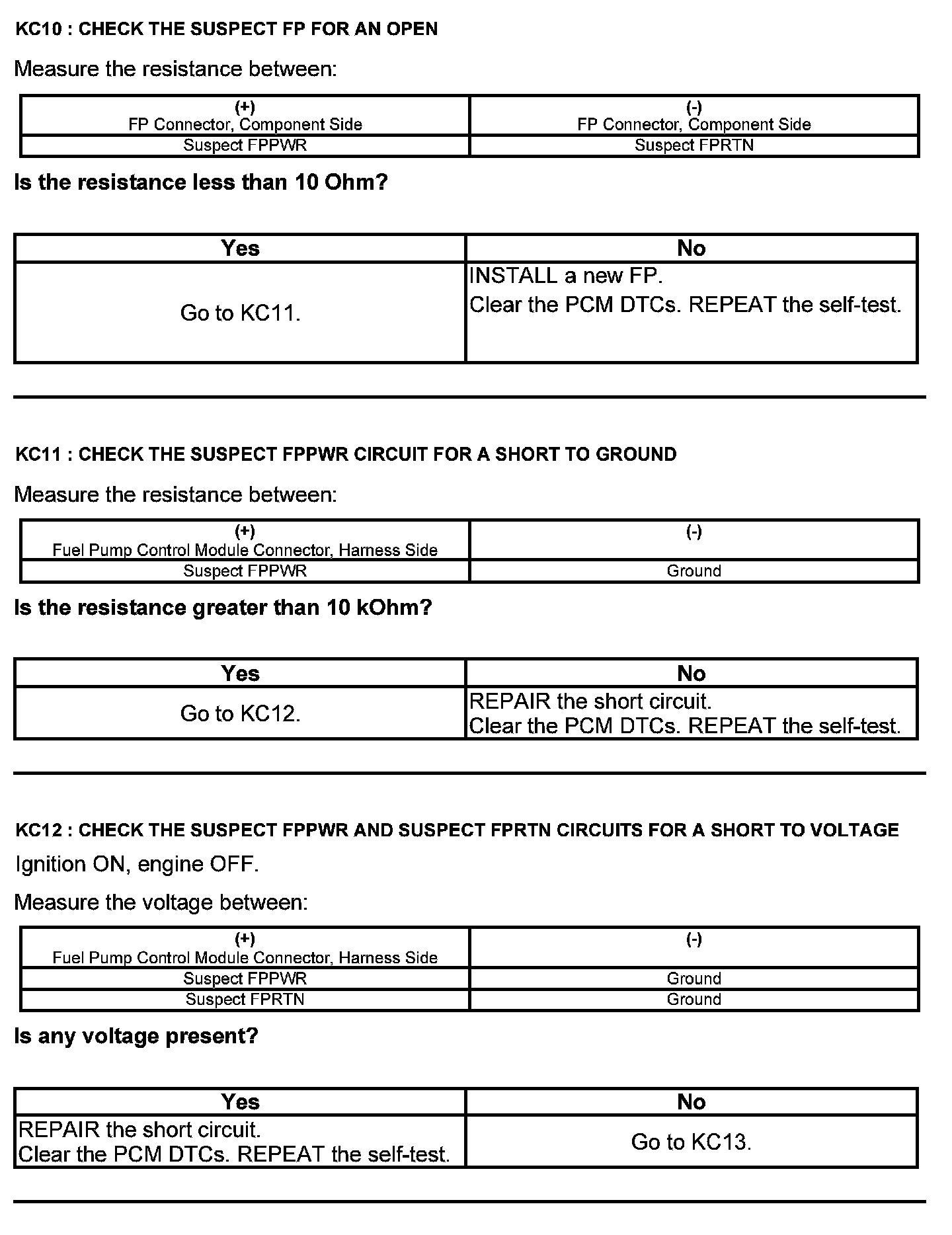 Test KC: Fuel Pump Control Module