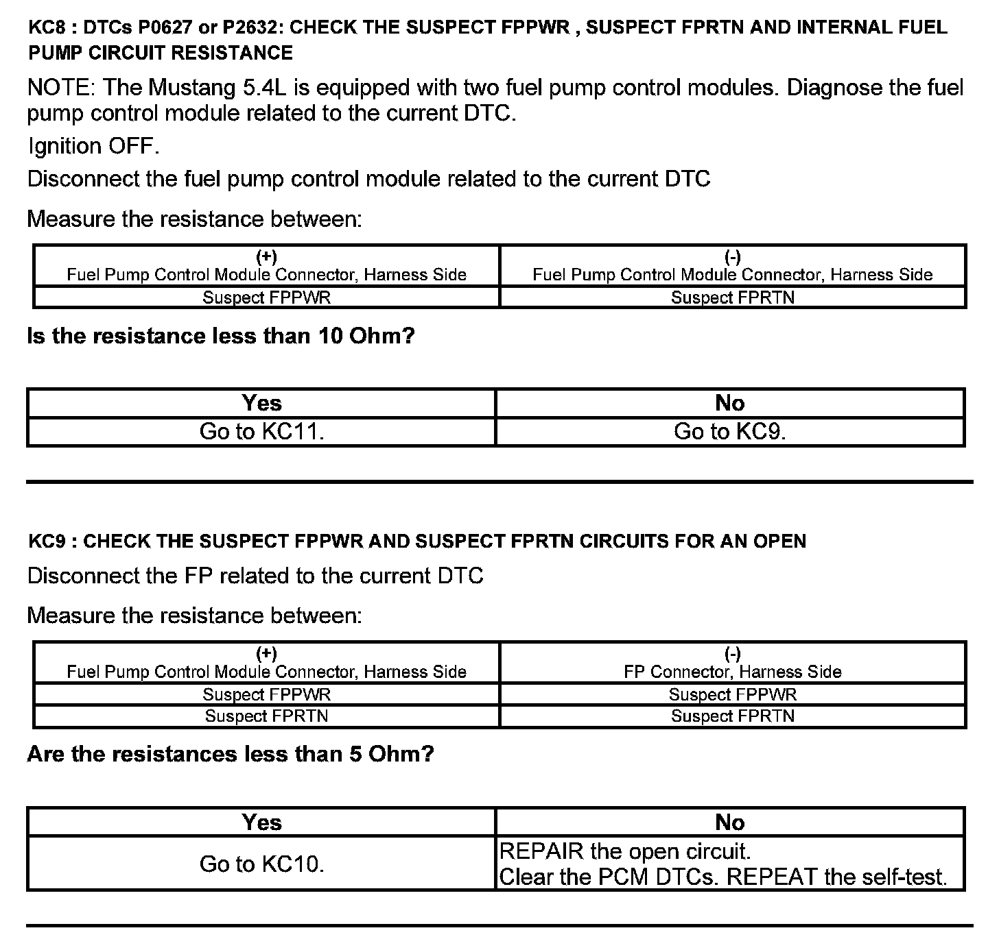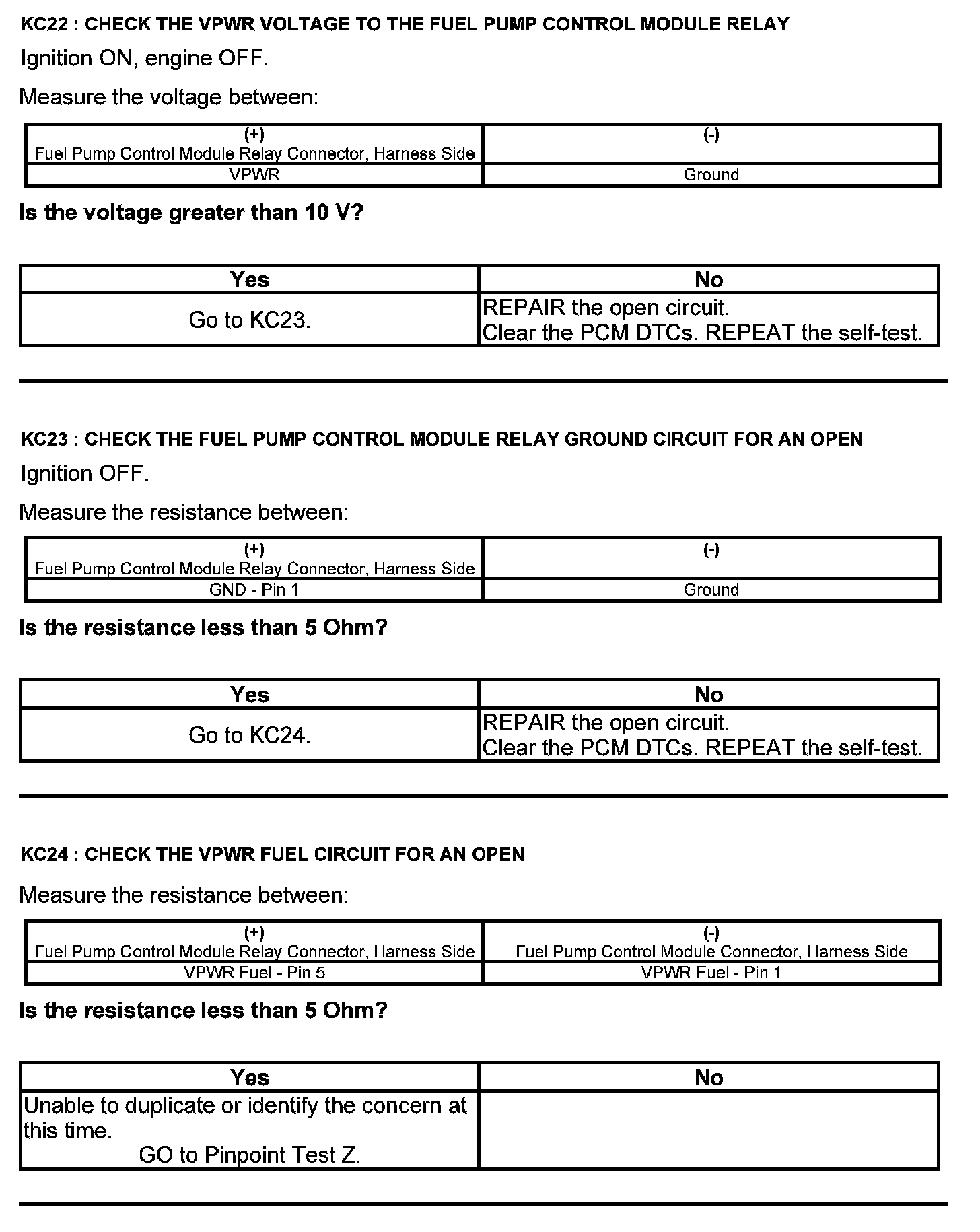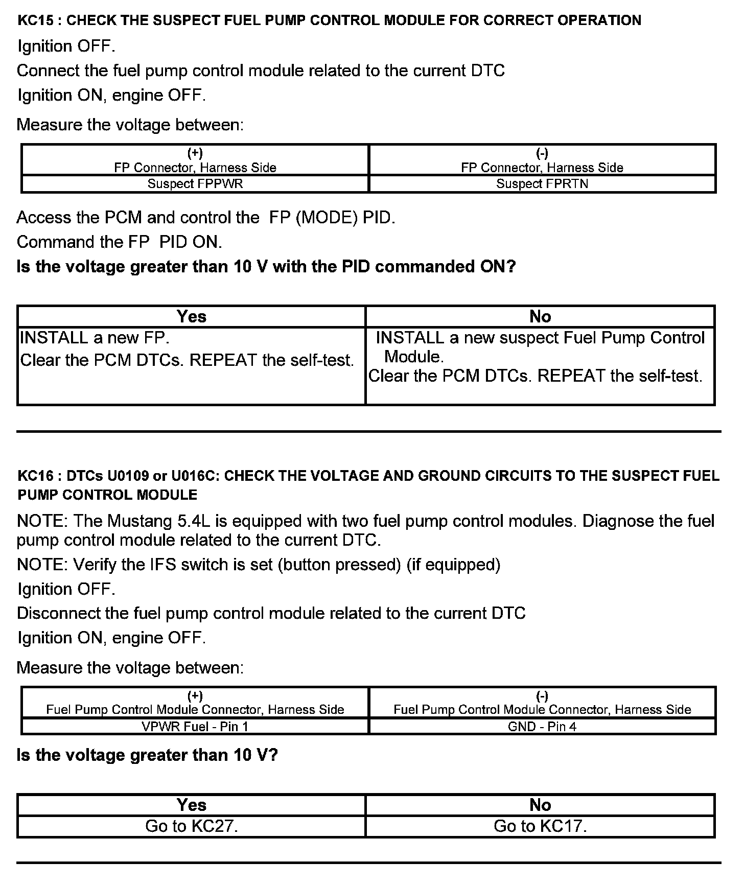 Test KC: Fuel Pump Control Module