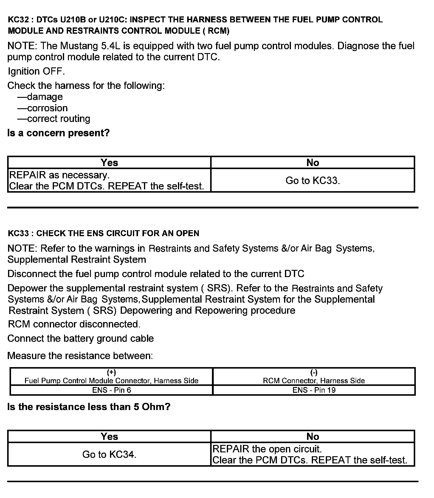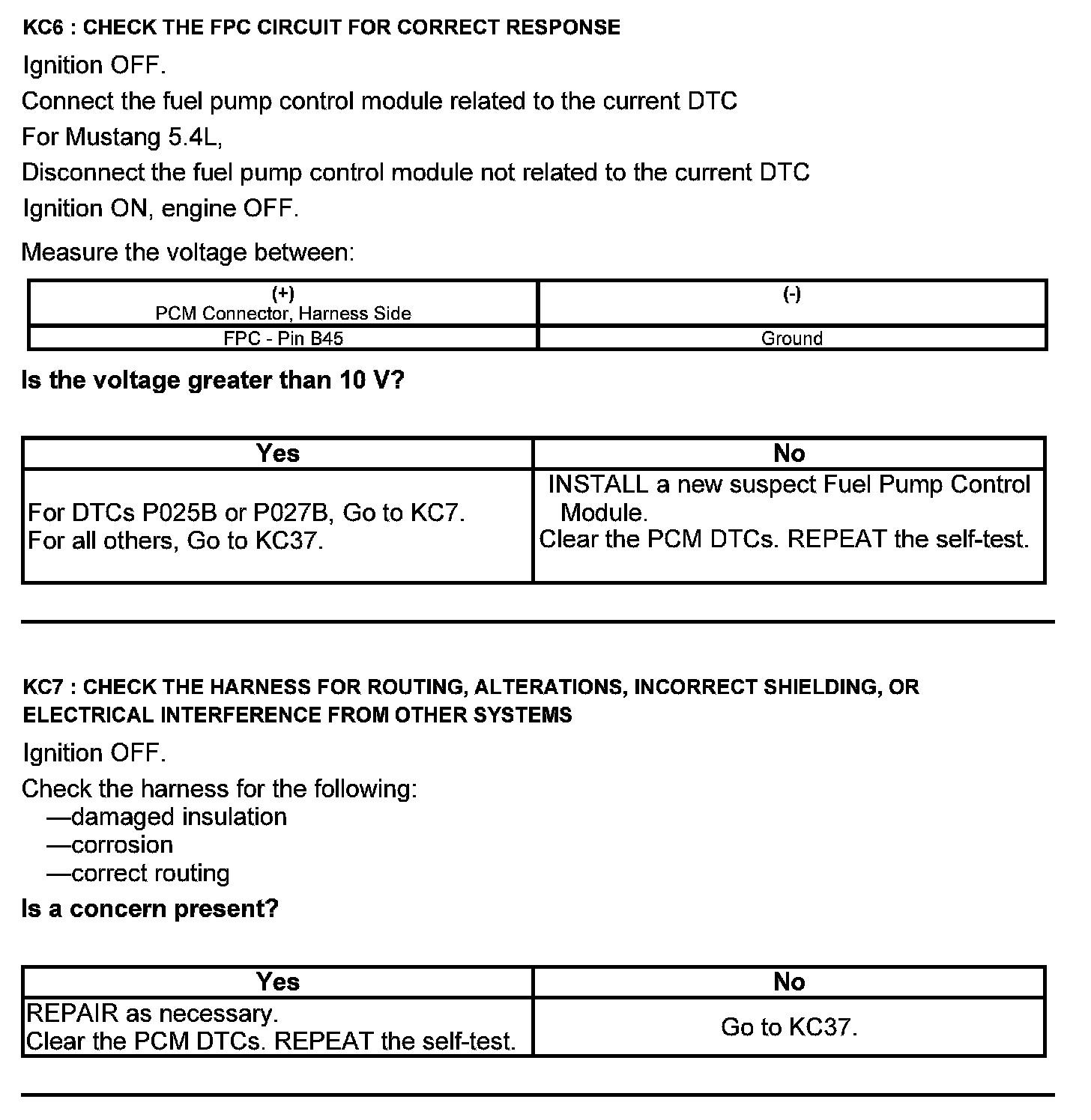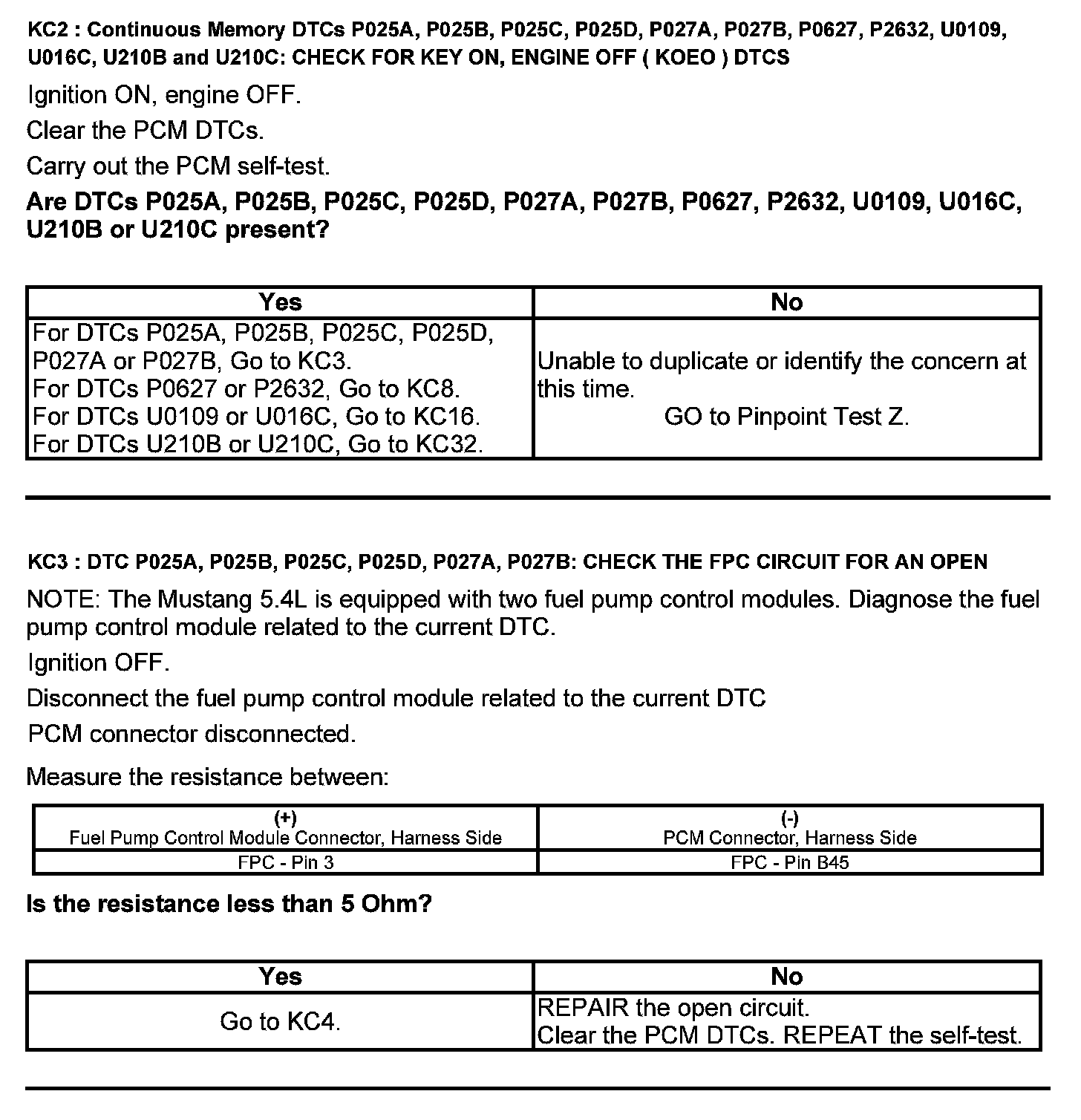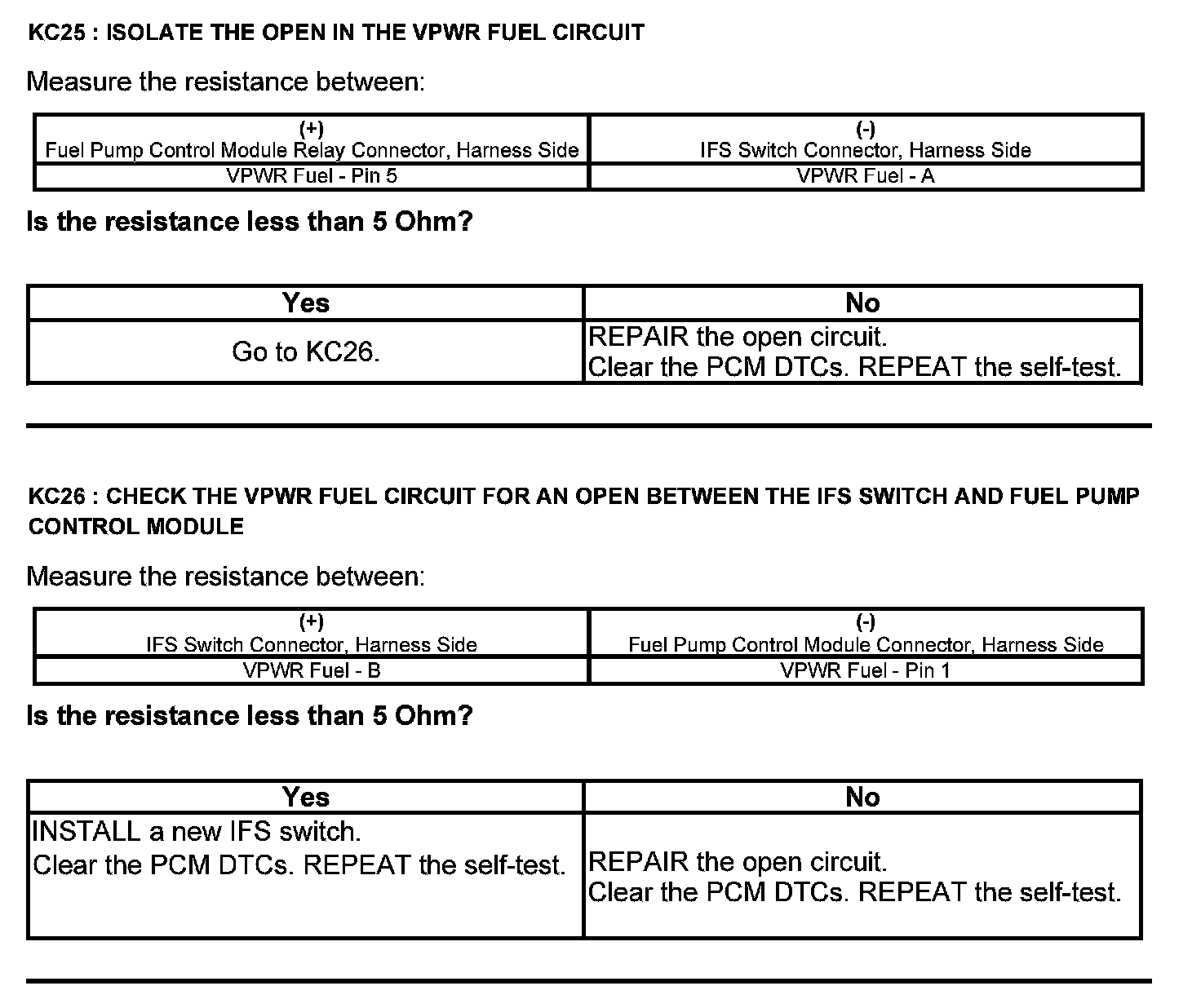 Test KC: Fuel Pump Control Module