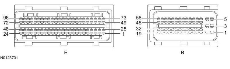 Powertrain Control Module (PCM) Connector - For PCM connector views or reference values, refer to Reference Values.